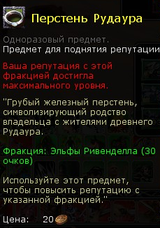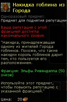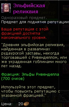 (чтобы получить репутацию, предмет необходимо использовать в инвентаре).