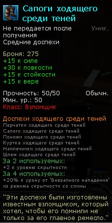| Предмет | Требование | Торговец |