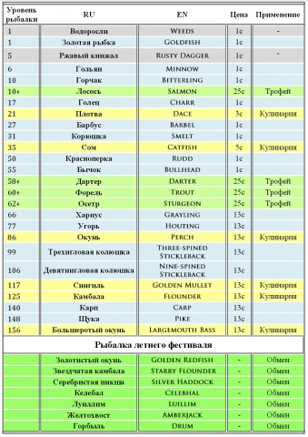 Я взяла на себя смелость предложить такую сводную табличку в помощь рыболовам, не знакомым с заморскими названиями.