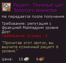 Рецепт: Тяжелый щит Золотого воинства
